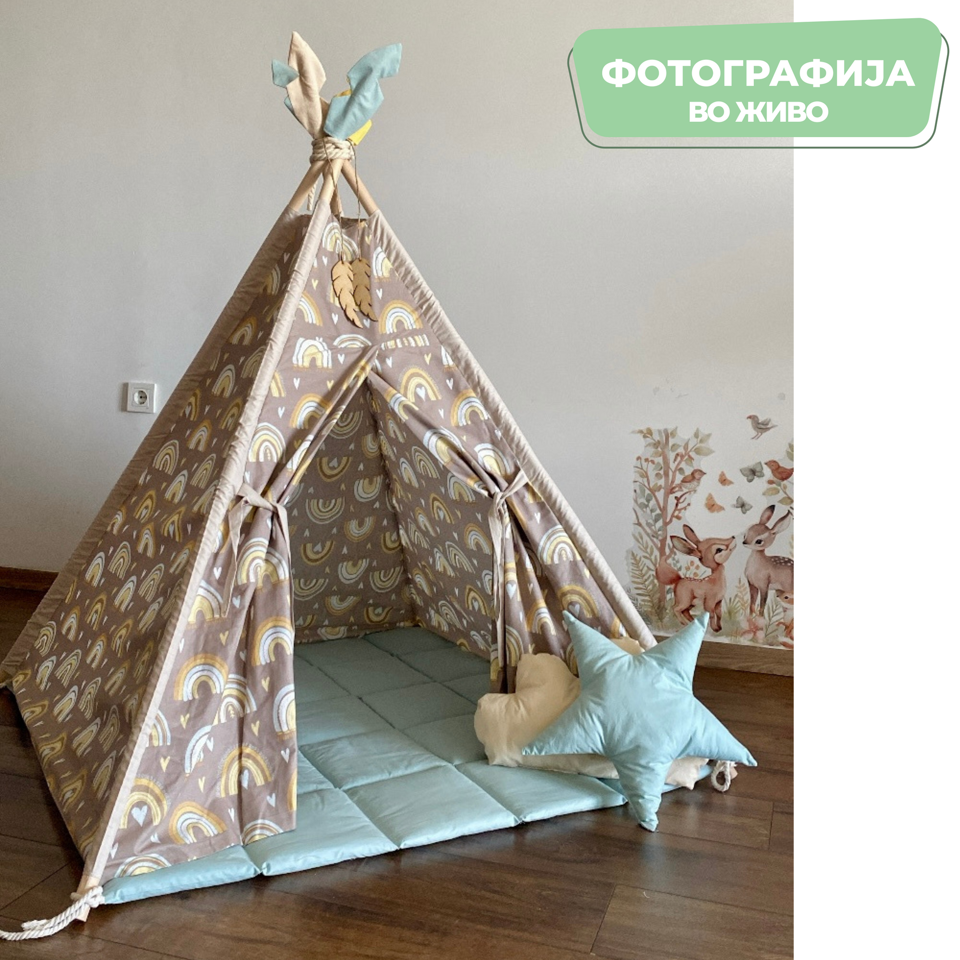 Подарете му на вашето дете магично катче за игра, одмор и фантазија со ова прекрасно тиипи шаторче, дизајнирано со љубов, стил и внимание на секој детал.